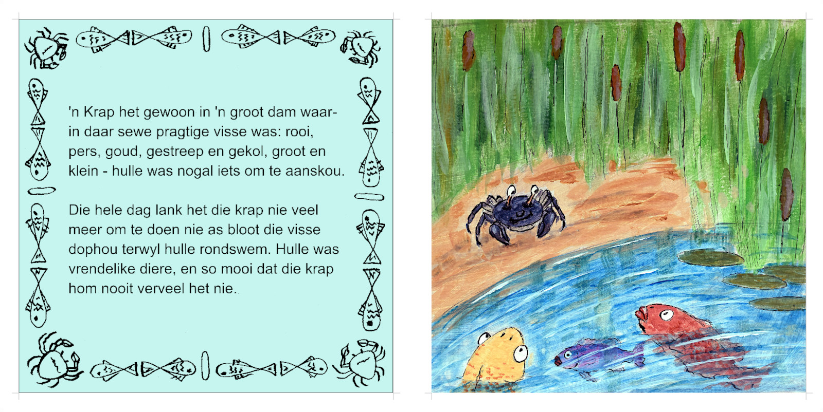 Hierdie is die Afrikaanse weergawe van The Crab and the Crane, die vyfde in 'n reeks volksverhale uit Afrika. Indie u die storie geniet, oorweeg om 'n kopie te koop - beide 'n e-boek en gedrukte weergawe is beskikbaar.